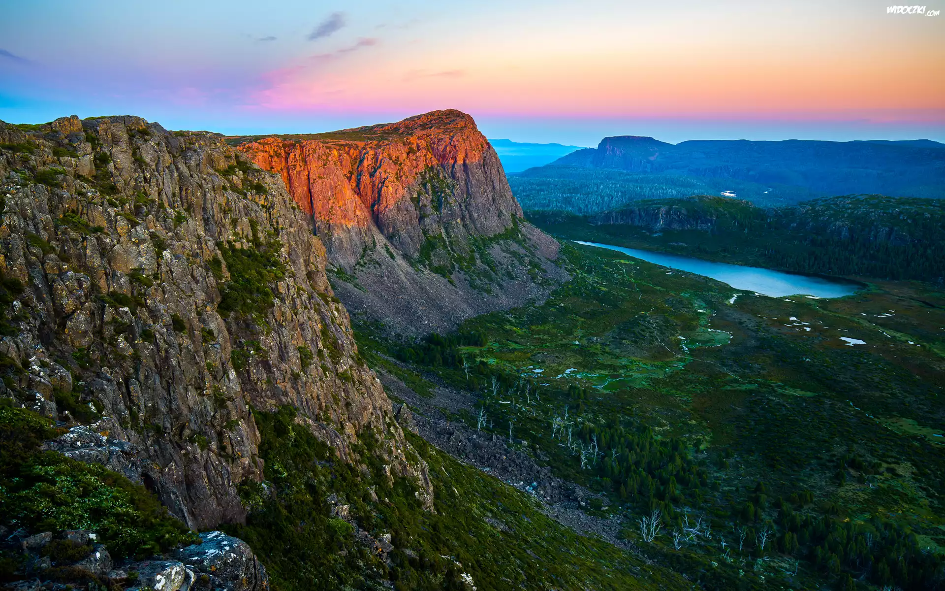 Australia, Góry, Jezioro, Wschód, Słońca
