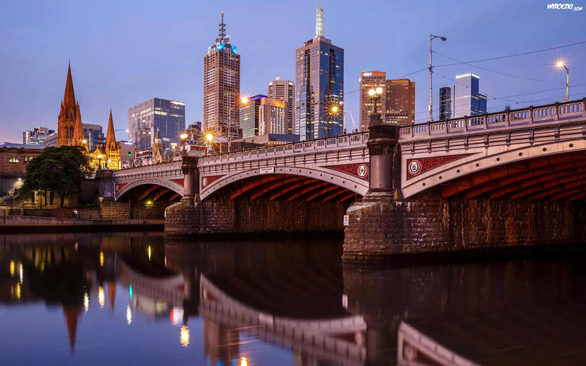 Zdjęcia, Australia, Melbourne, Most, Princes Bridge, Rzeka Yarra, Domy, Wieżowce