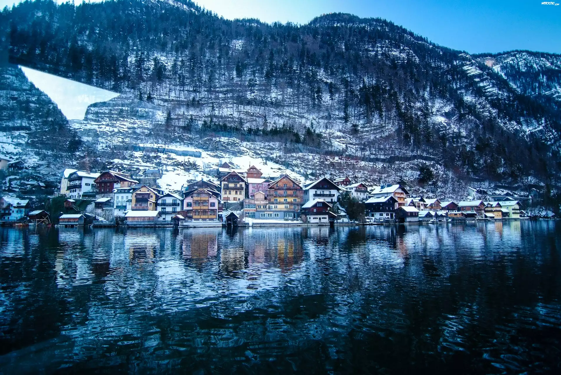 Austria ,Góry, Jezioro, Domy, Drzewa