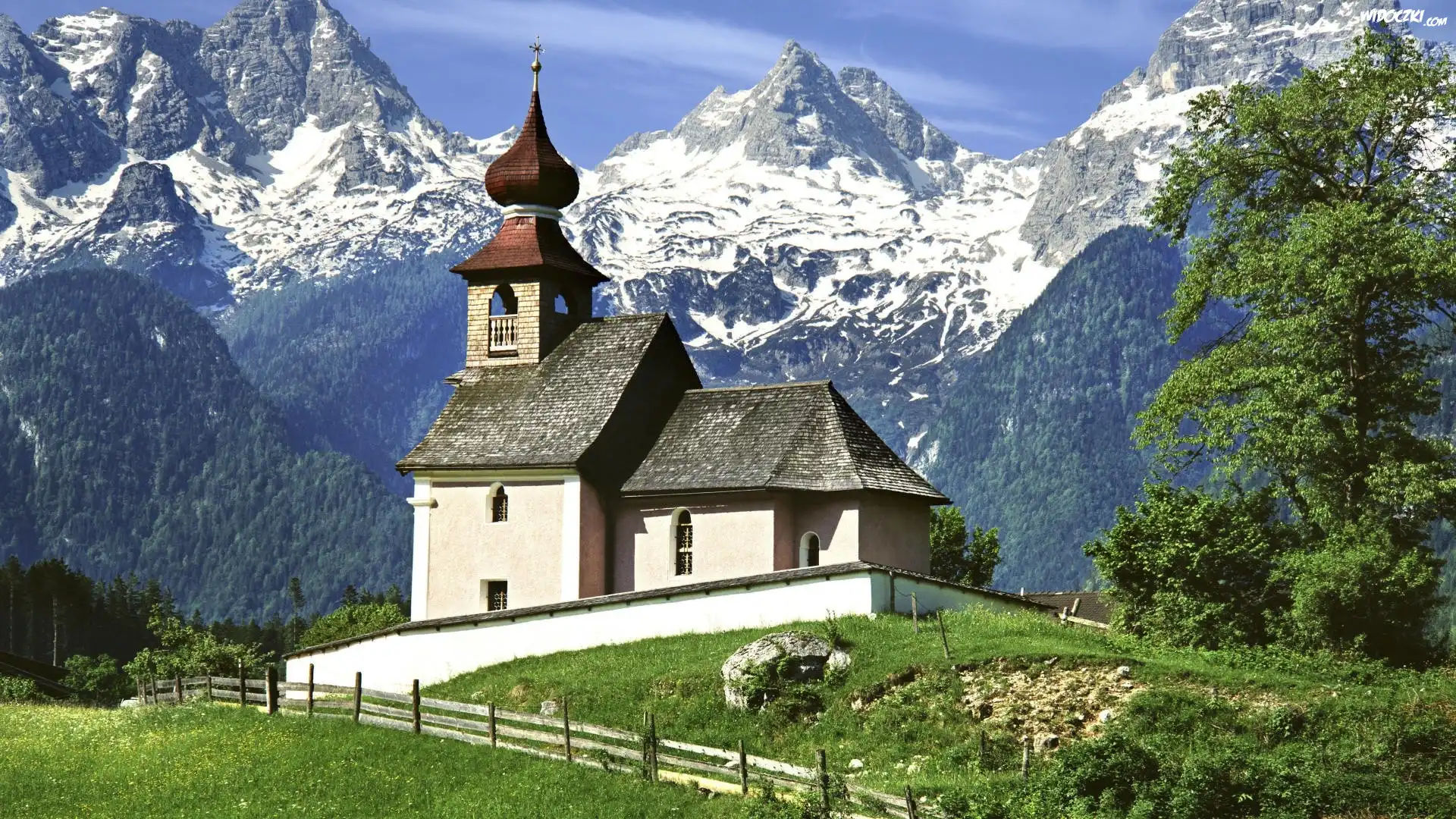 Zdjęcia, Austria, Góry, Cerkiew, Drzewo, Drewniany, Płot