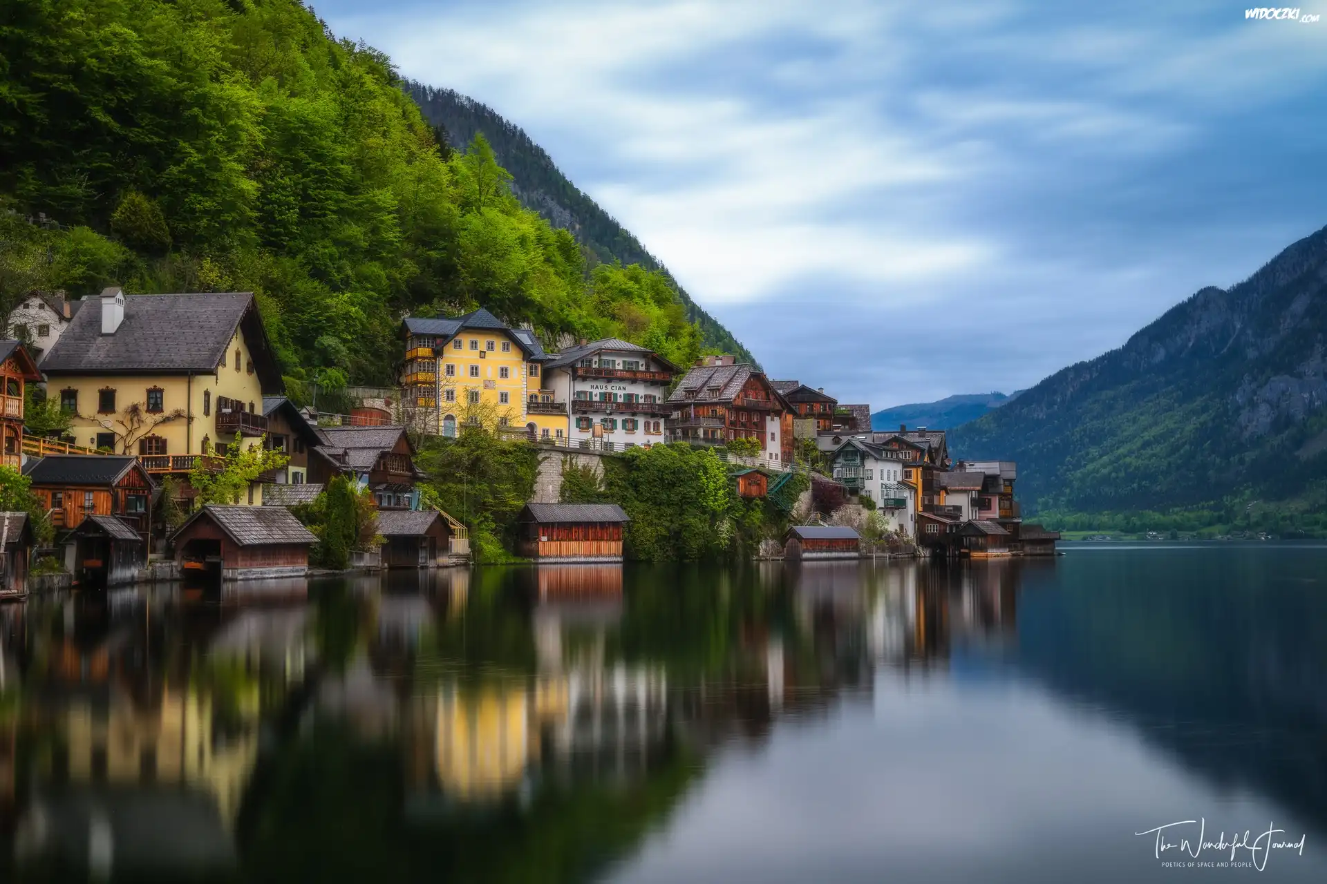 Hallstatt, Austria, Jezioro, Domy, Góry