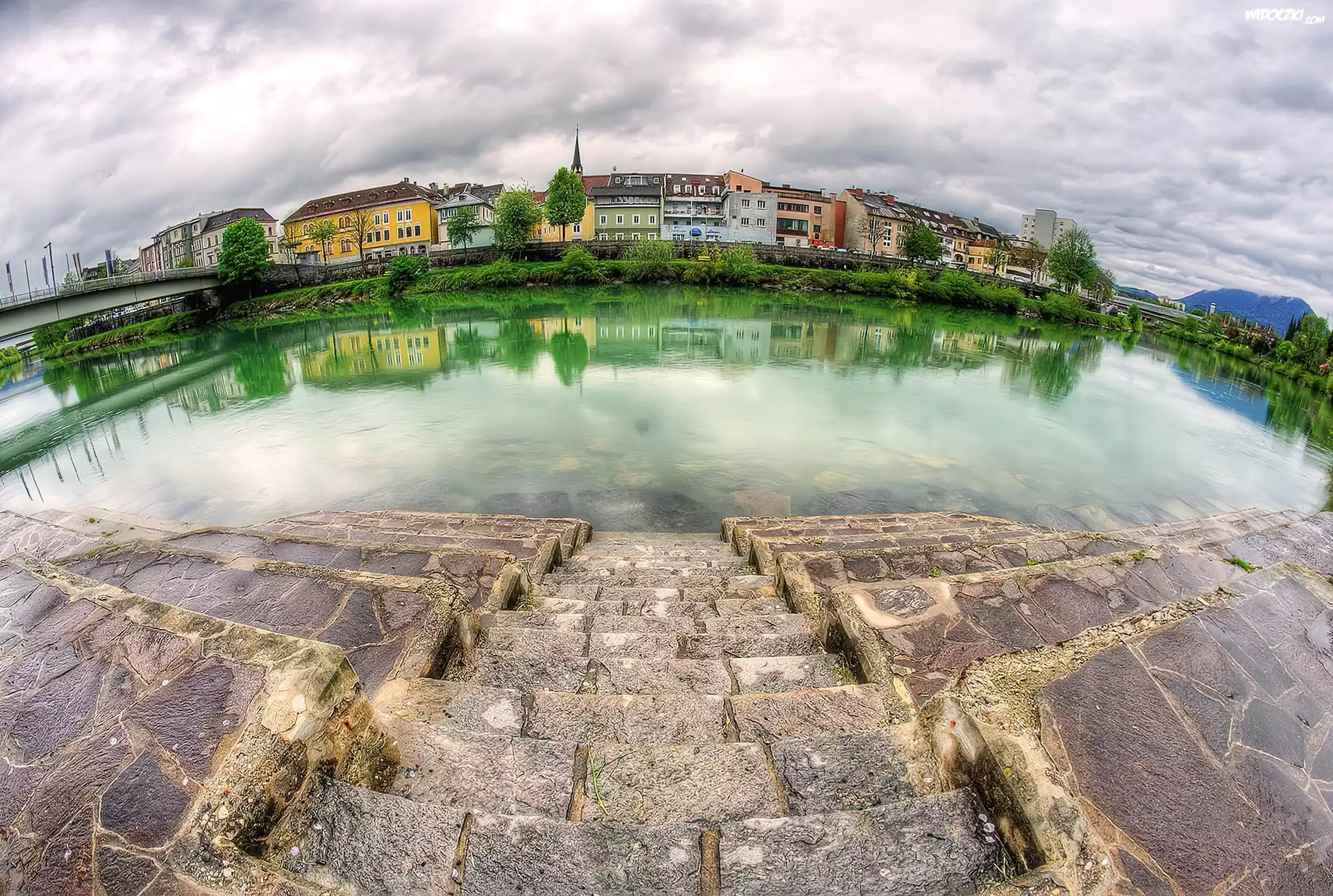 Zdjęcia, Rzeka, Miasto, Mosty, Schody