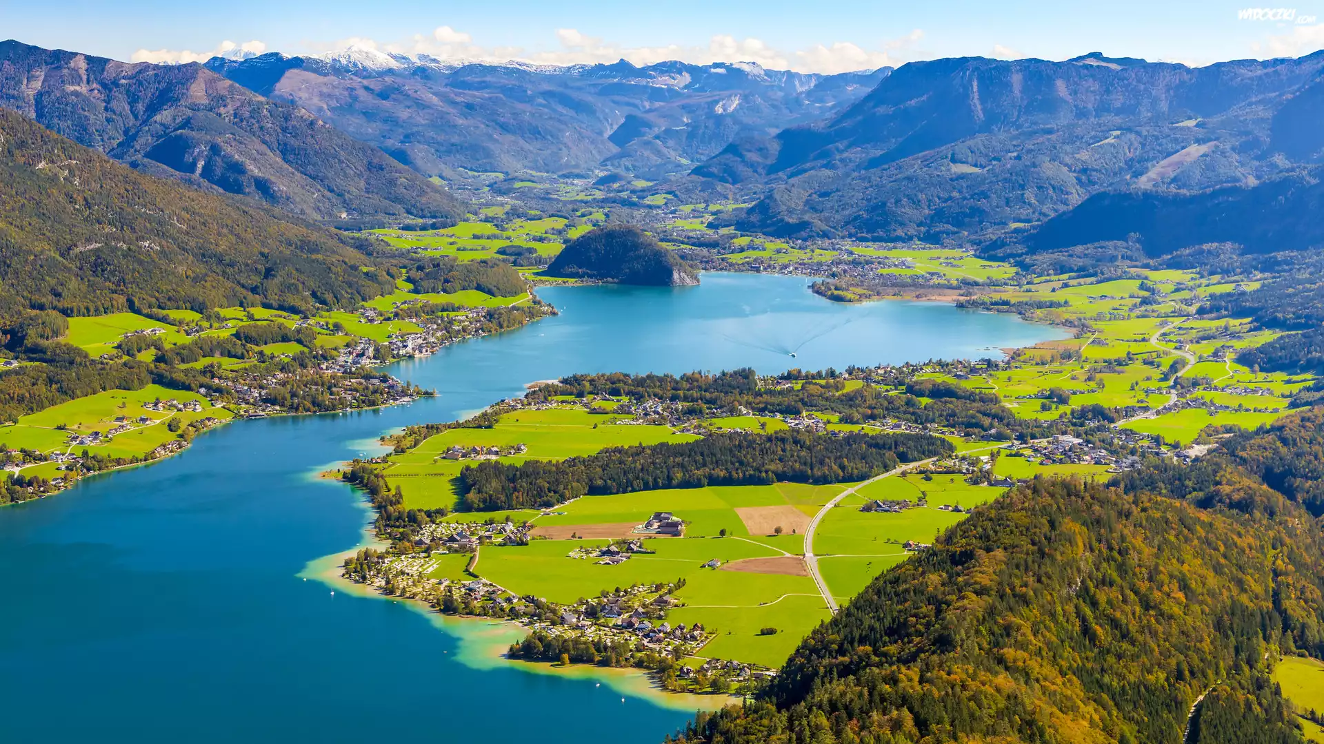 Zdjęcia, Z lotu ptaka, Jezioro Wolfgangsee, Góry, Alpy, Austria