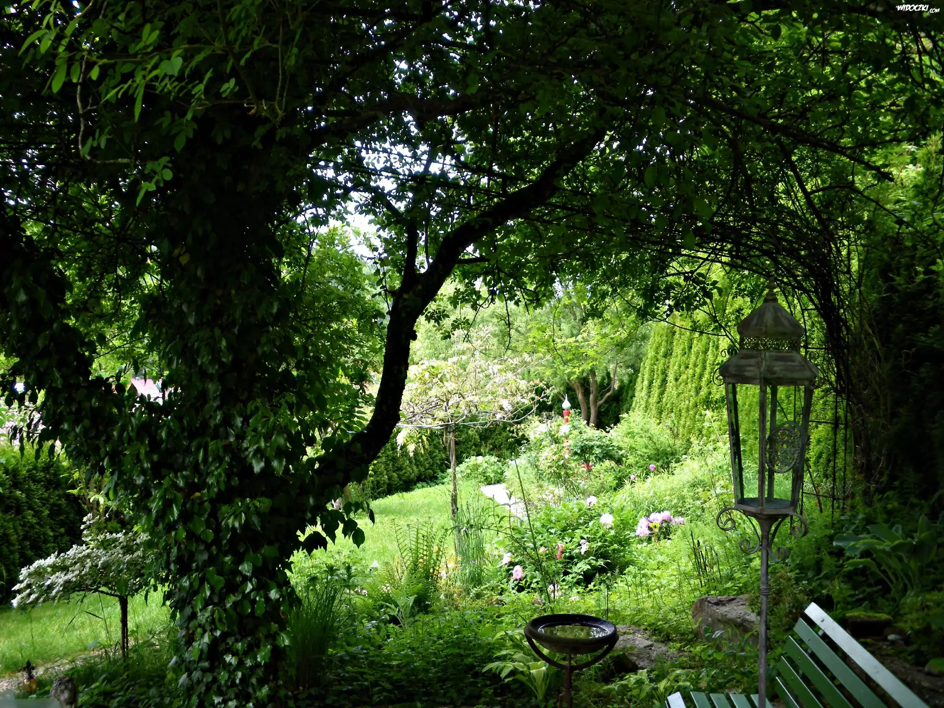 Zdjęcia, Ogród, Ławeczka, Latarenka