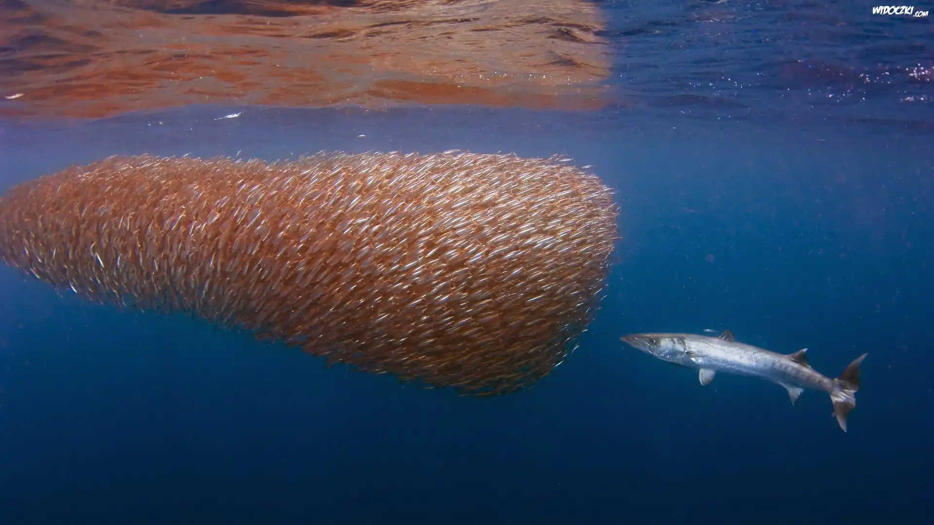 Zdjęcia, Ławica, Śledzi, Atak, Barrakuda, Morze, Indonezja