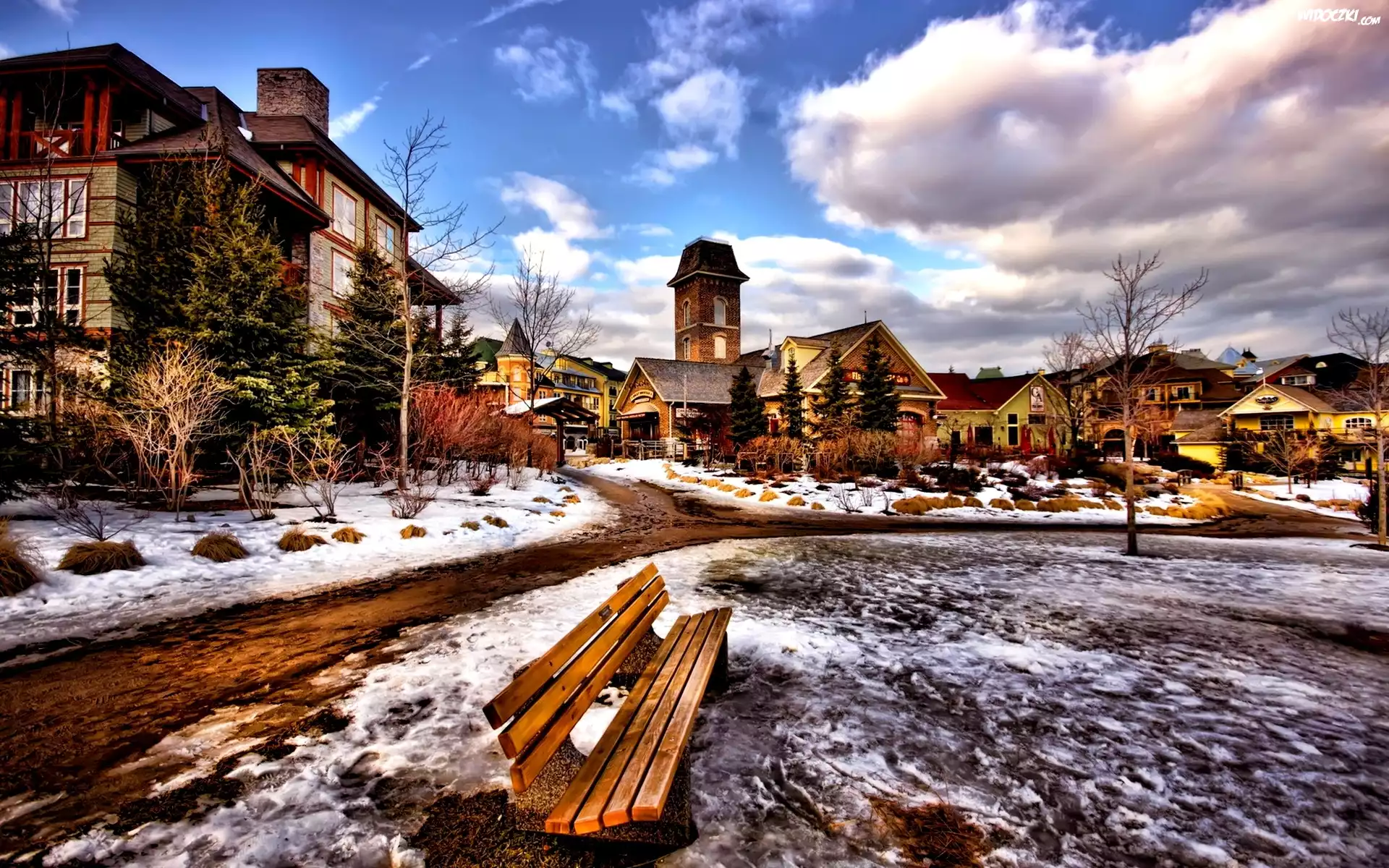 Zdjęcia, Domy, Ławka, Zima