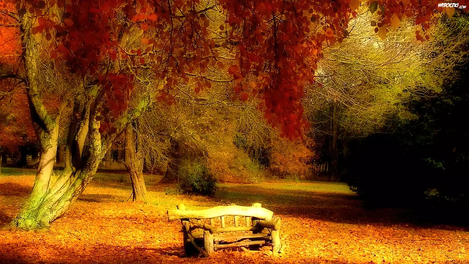 Zdjęcia, Jesień, Ławka, Liście