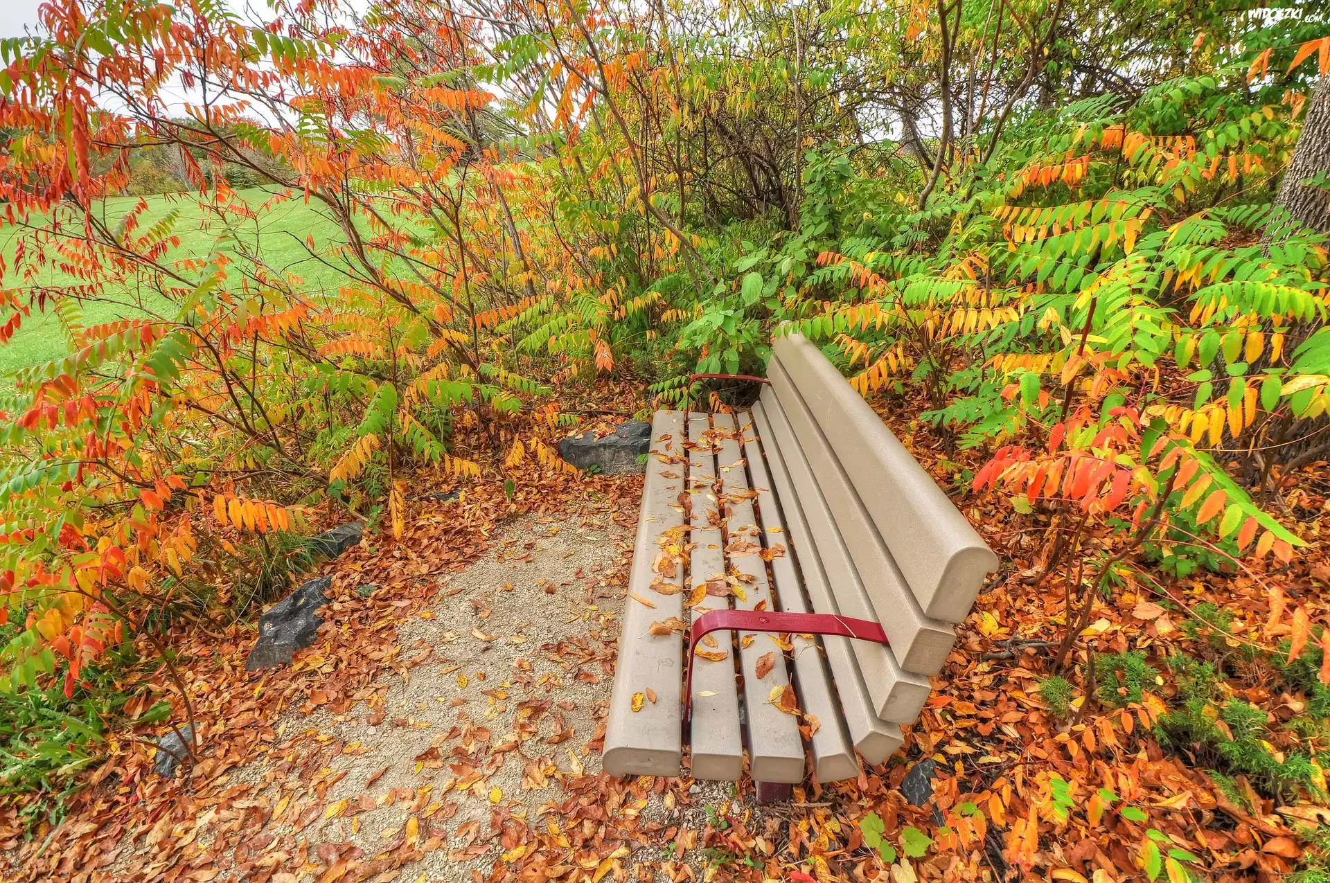 Zdjęcia, Park, Ławka, Jesień