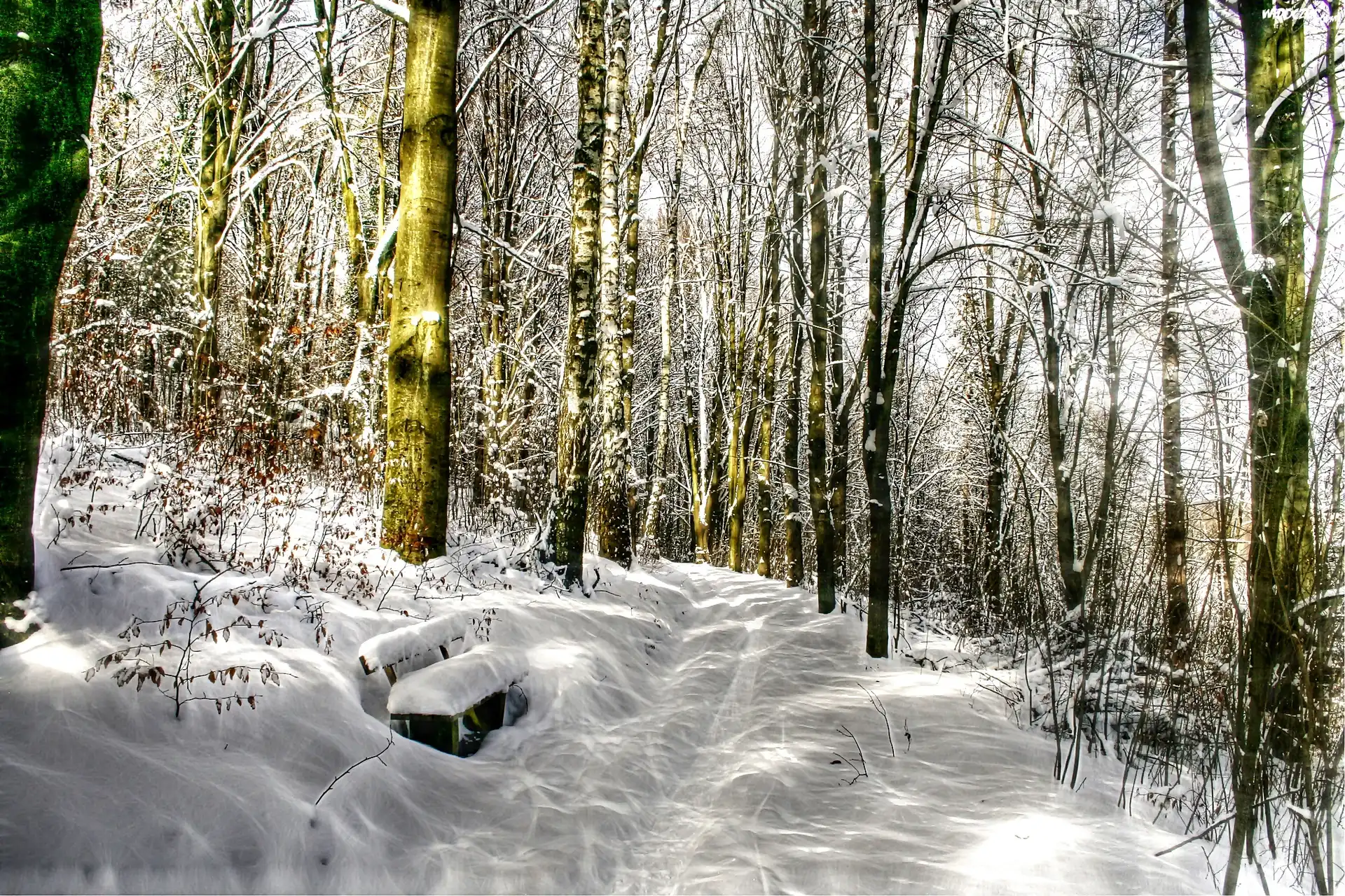 Zdjęcia, Zima, Ławka, Las