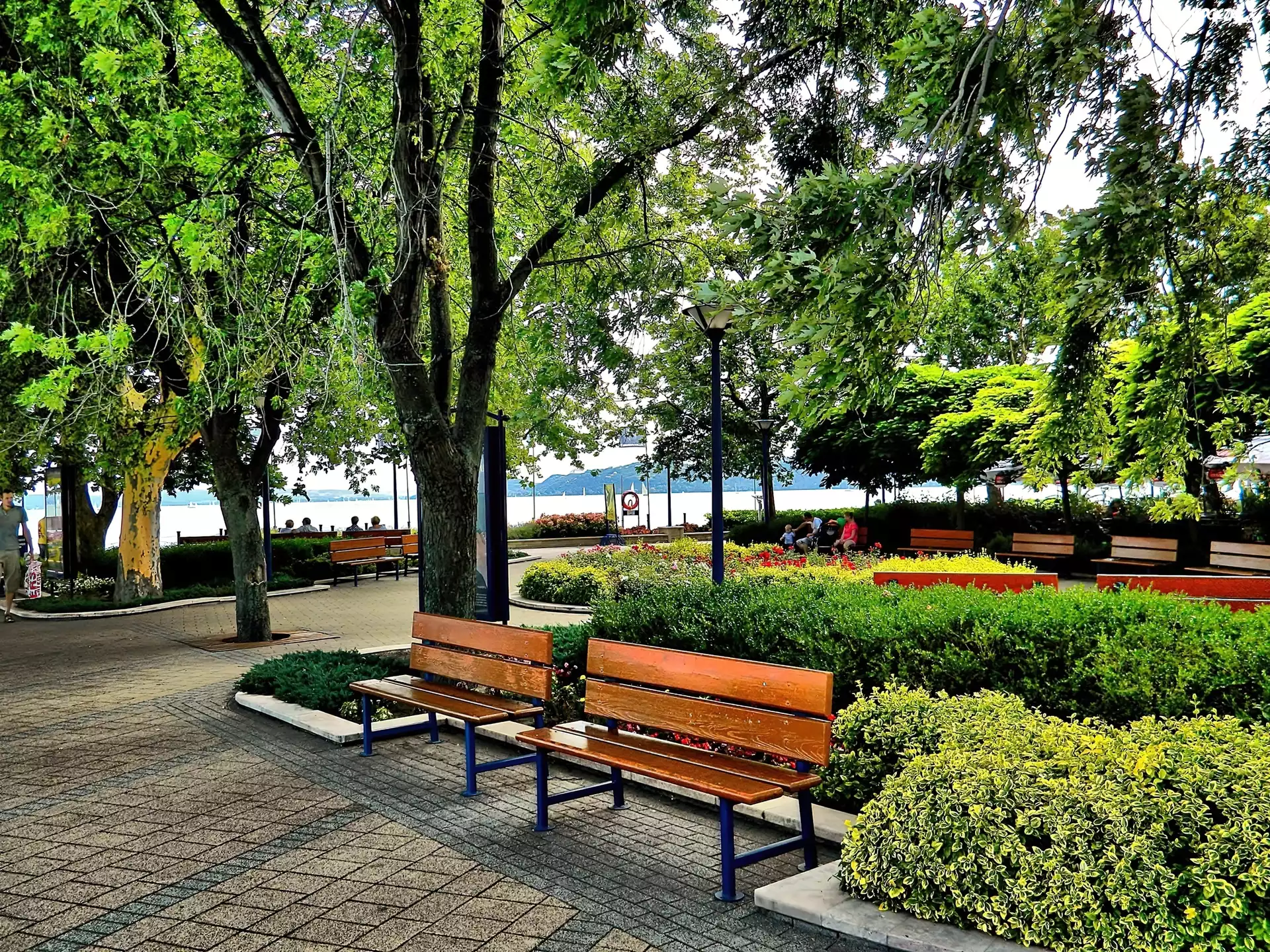 Zdjęcia, Park, Ławki, Jezioro