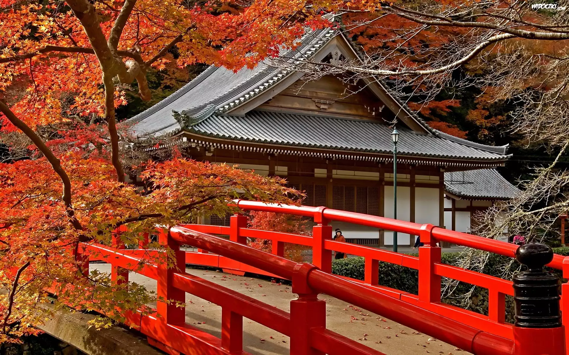Zdjęcia, Azjatycka, Budowla, Czerwony, Mostek, Jesień
