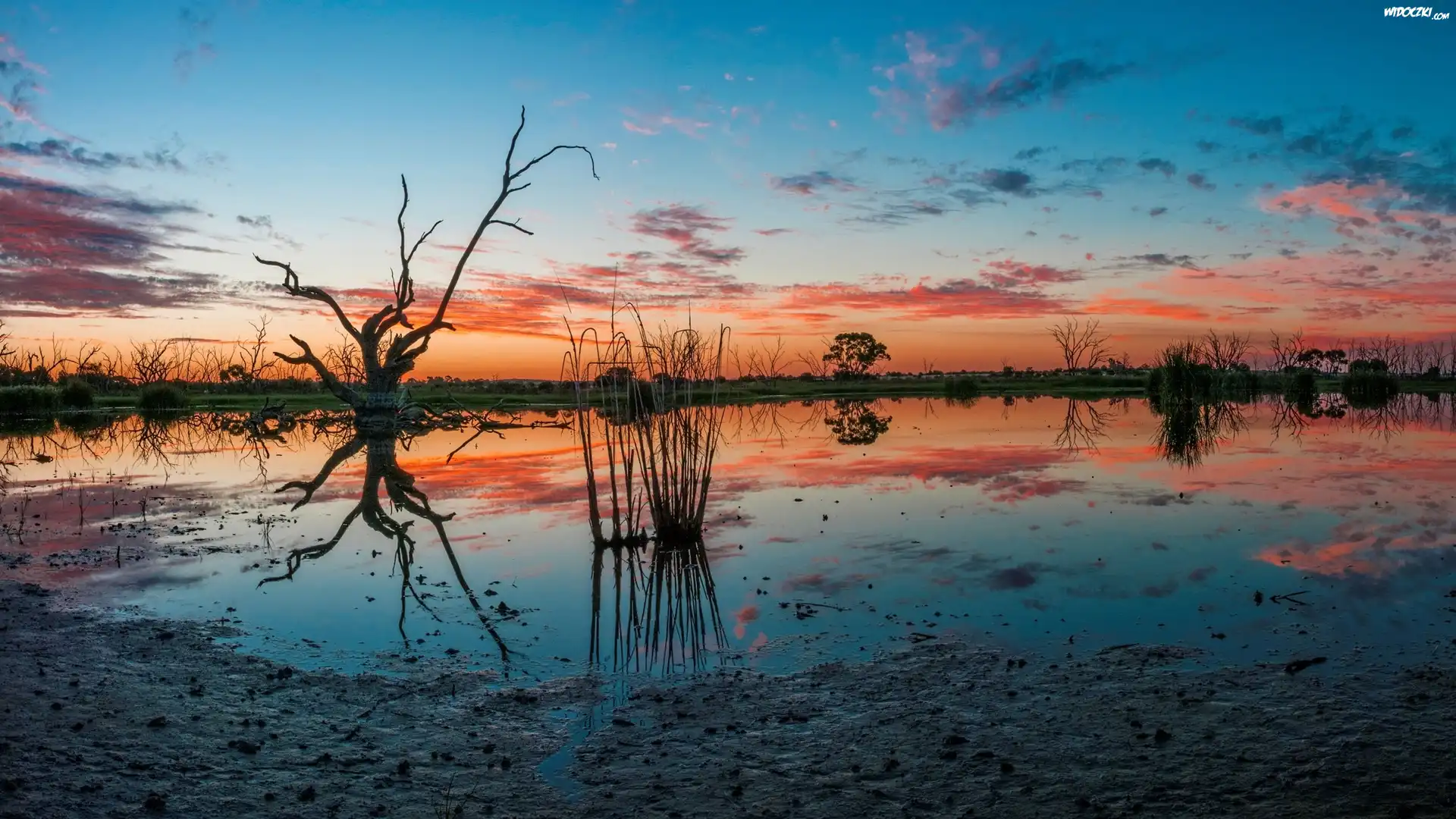 Zdjęcia, Bagno, Niebo, Zachód, Słońca