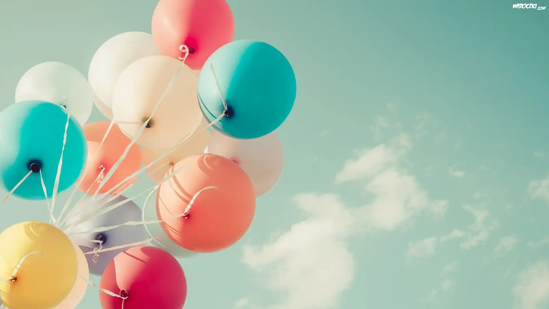 Kolorowe, Balony, Baloniki, Pochmurne, Niebo