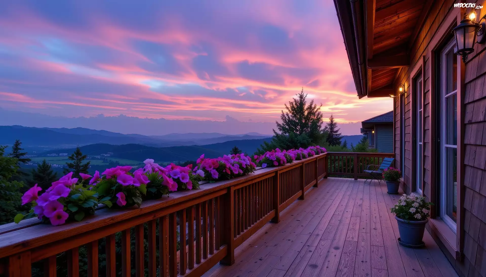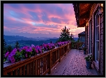 Zdjęcia, Kwiaty, Dom, Balkon, Balustrada, Zachód słońca