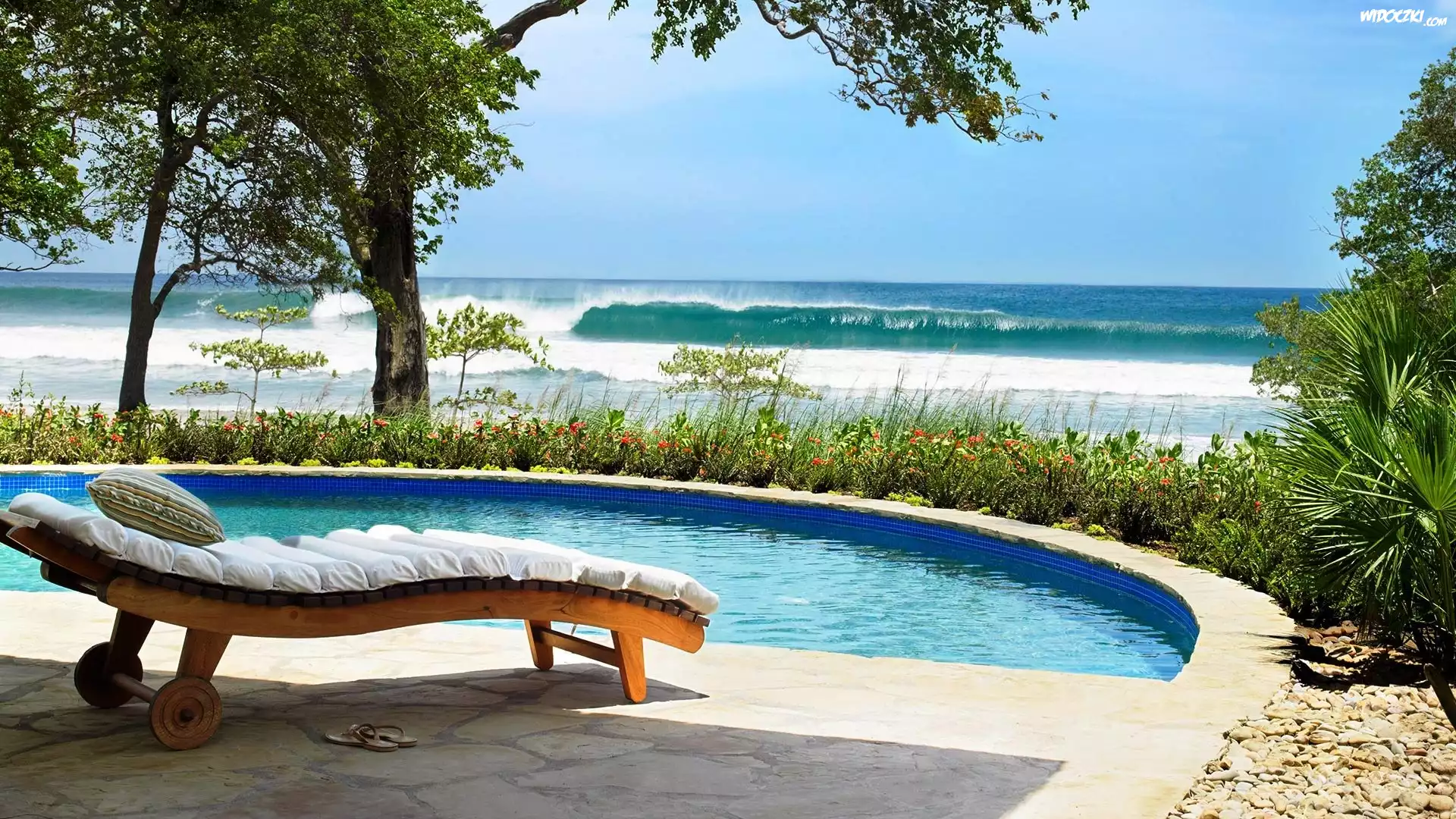 Basen, Leżak, Morze, Roślinność, Wakacje