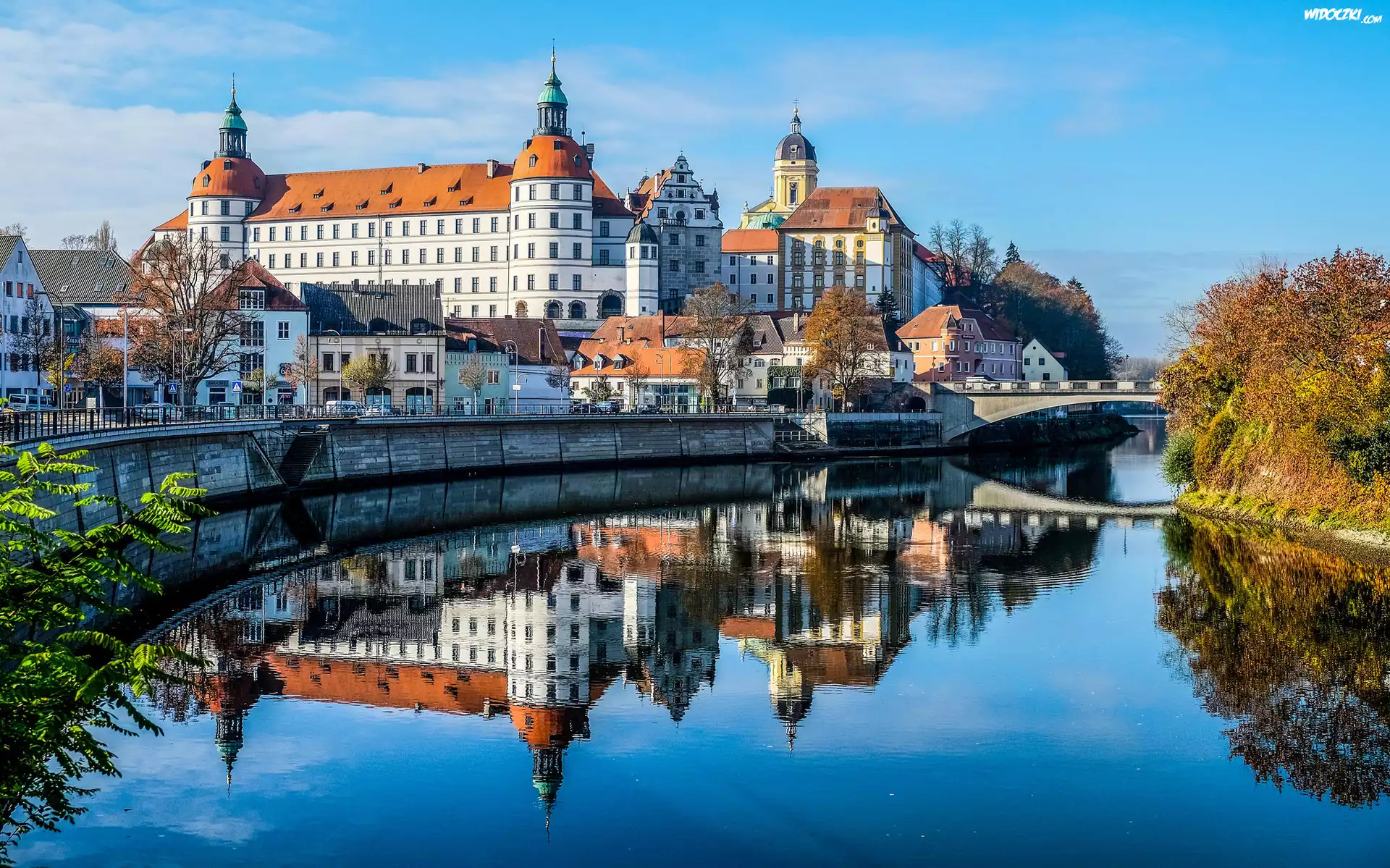 Zdjęcia, Niemcy, Bawaria, Zamek Neuburg Castle, Rzeka Dunaj, Odbicie
