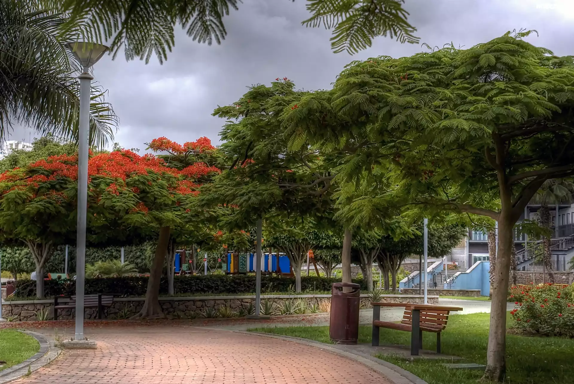 Zdjęcia, Park, Bench, Nature, Spain, Aleja, Wyspy, Kanaryjskie