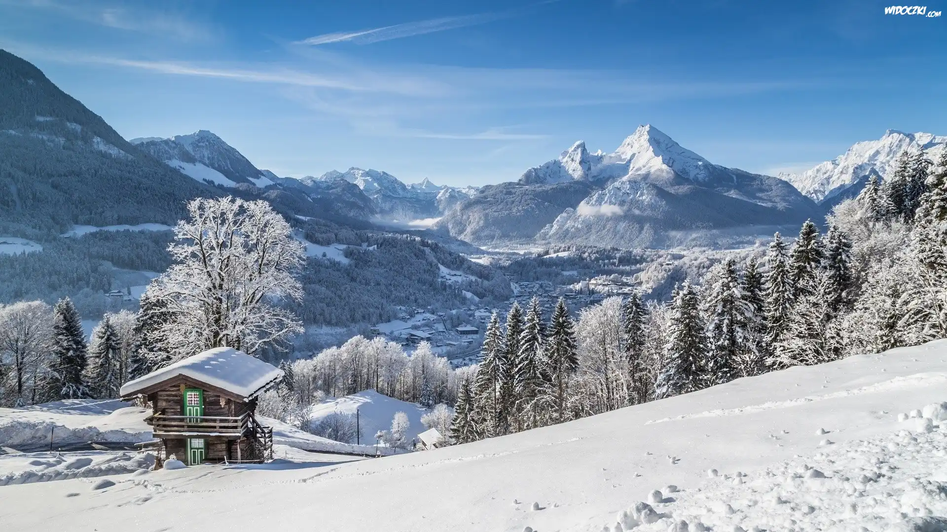 Niemcy, Berchtesgaden, Zima, Góry, Drzewa, Dom, Śnieg