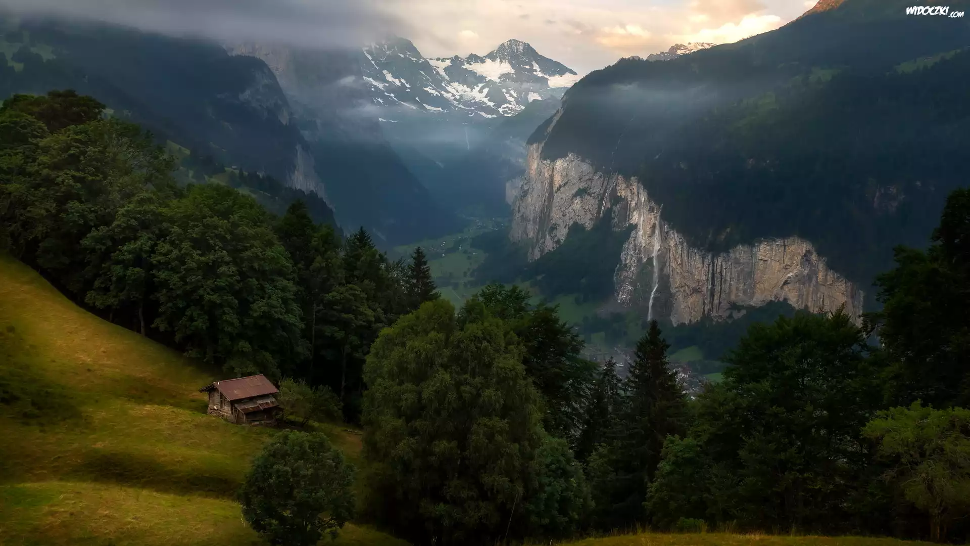 Gmina Lauterbrunnen, Wengen, Góry, Alpy Berneńskie, Dolina Lauterbrunnen, Lasy, Drzewa, Domy, Szwajcaria |