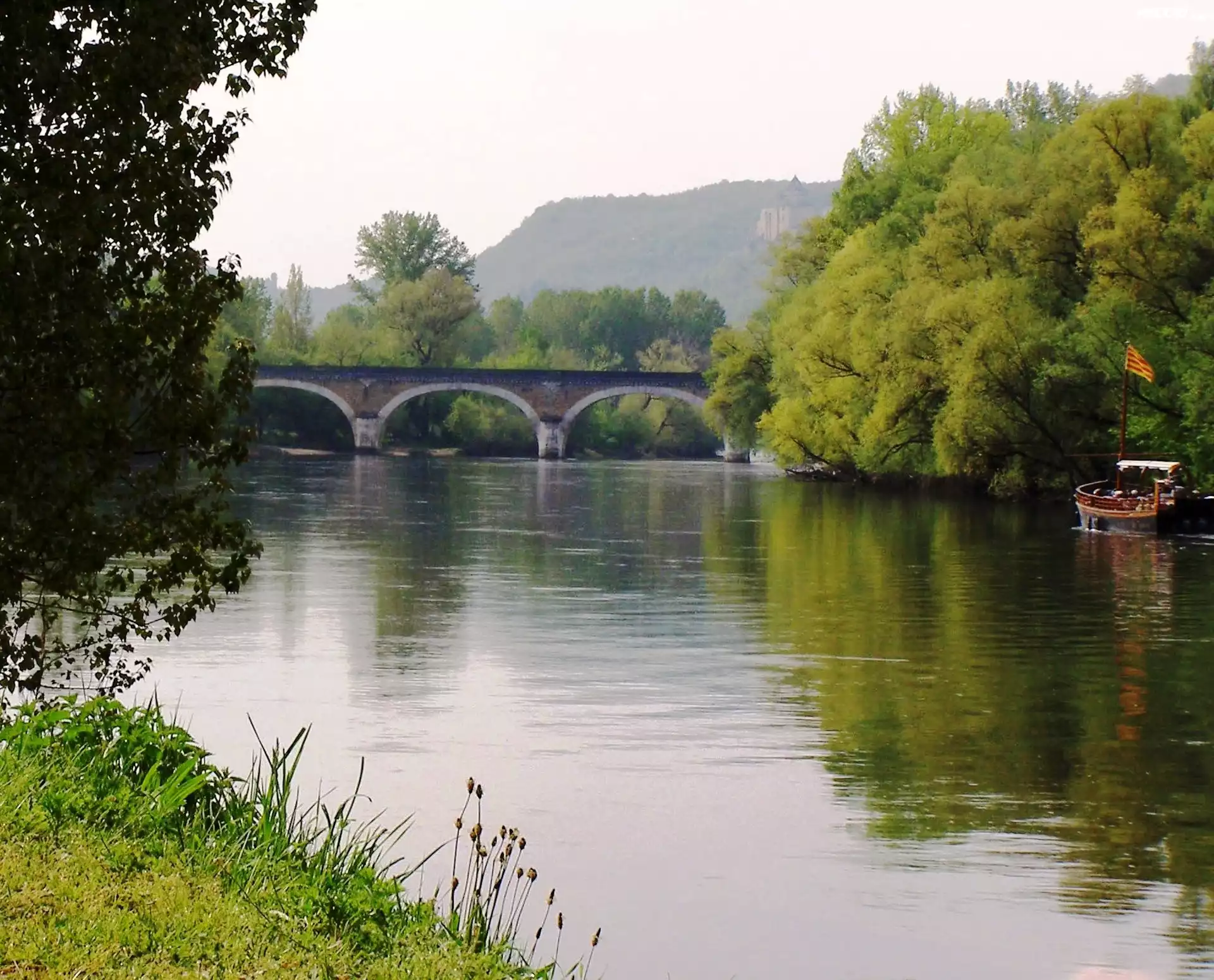 Zdjęcia, Beynac, Woda, Most, Drzewa