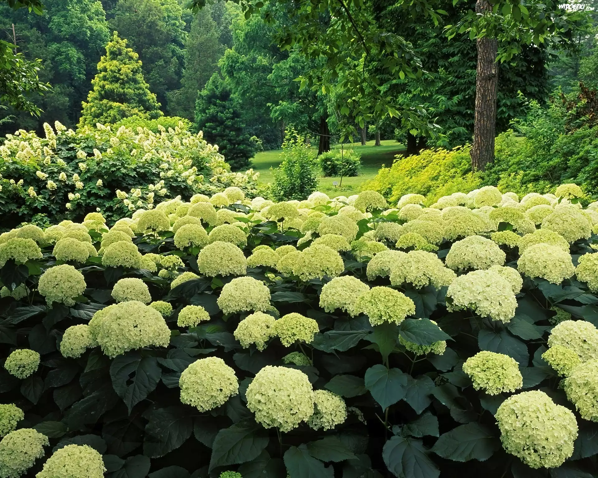 Ogród, Białe, Hortensje