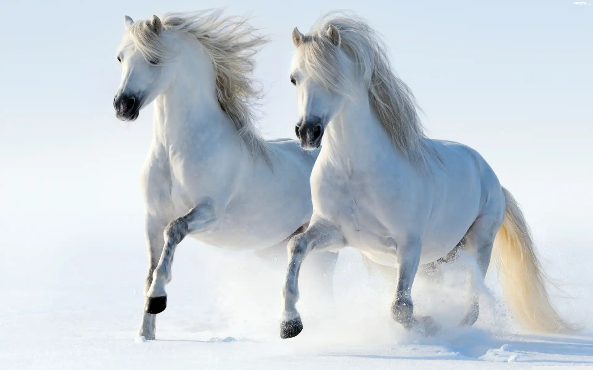 Zdjęcia, Białe, Konie, Zima, Śnieg