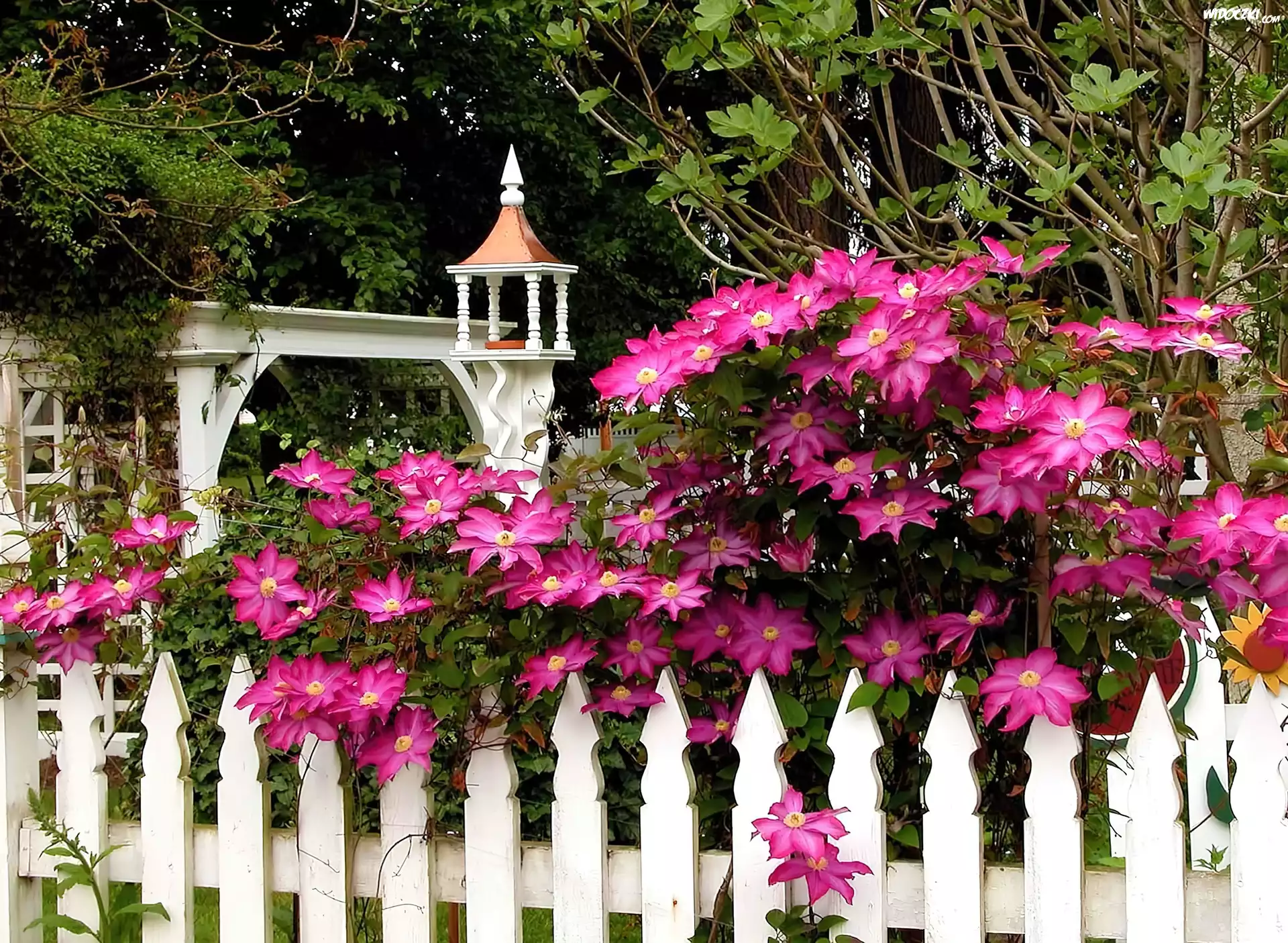 Zdjęcia, Clematis, Biały, Płot, Płotek, Ogród, Biała, Budowla