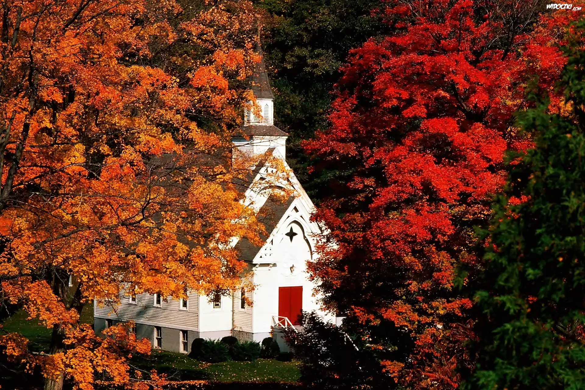 Biały, Kościółek, Jesienne, Drzewa