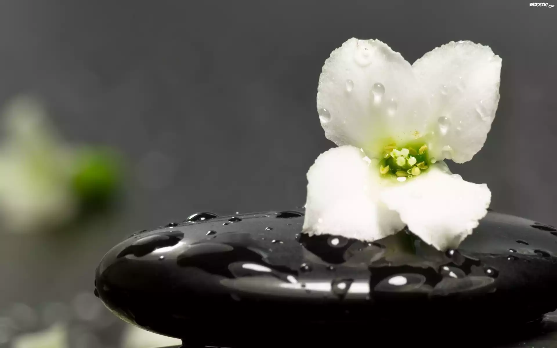 Zdjęcia, Biały, Kwiat, Czarny, Kamień, Krople, Wody