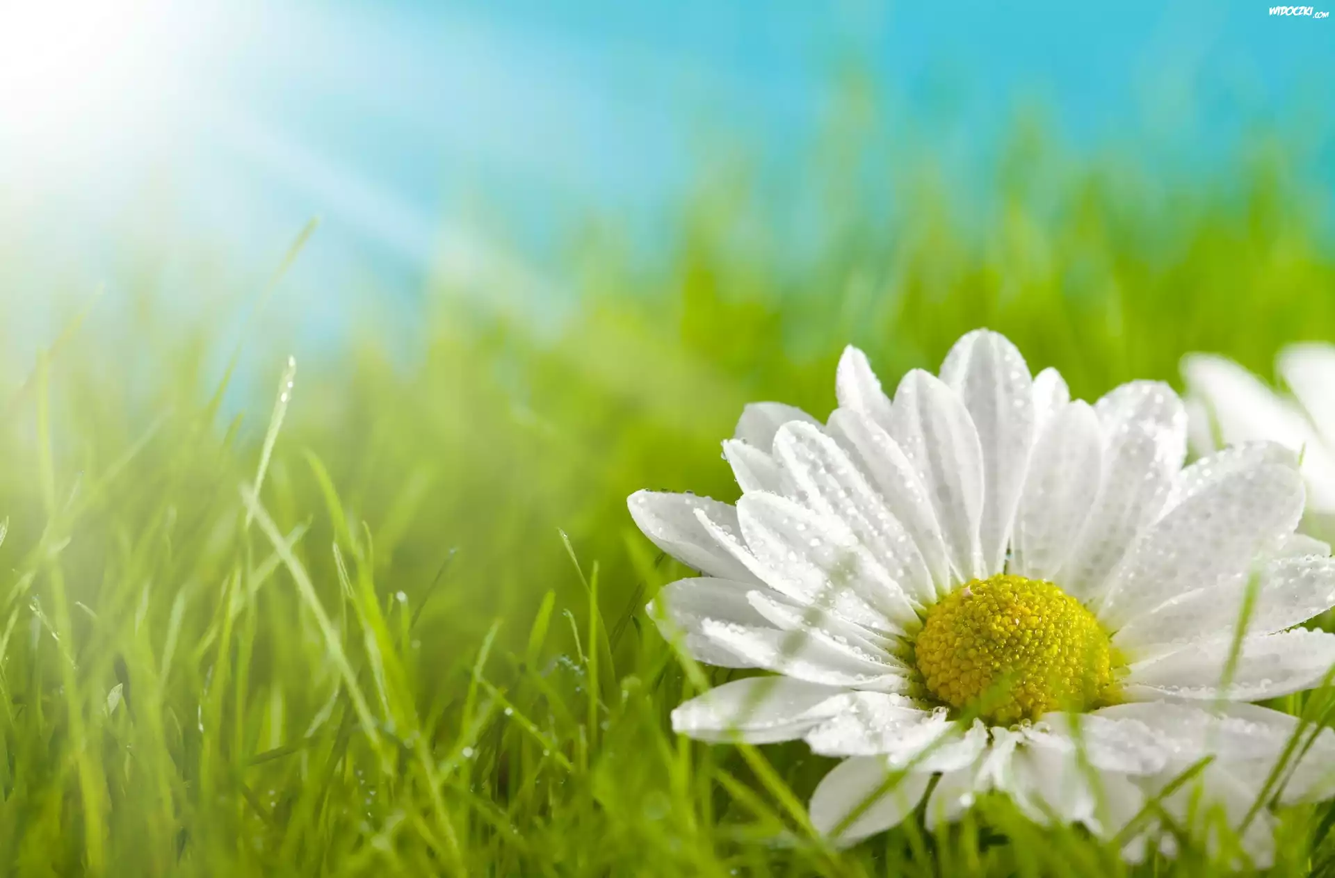 Zdjęcia, Biały, Kwiatek, Trawa, Promienie, Słońca