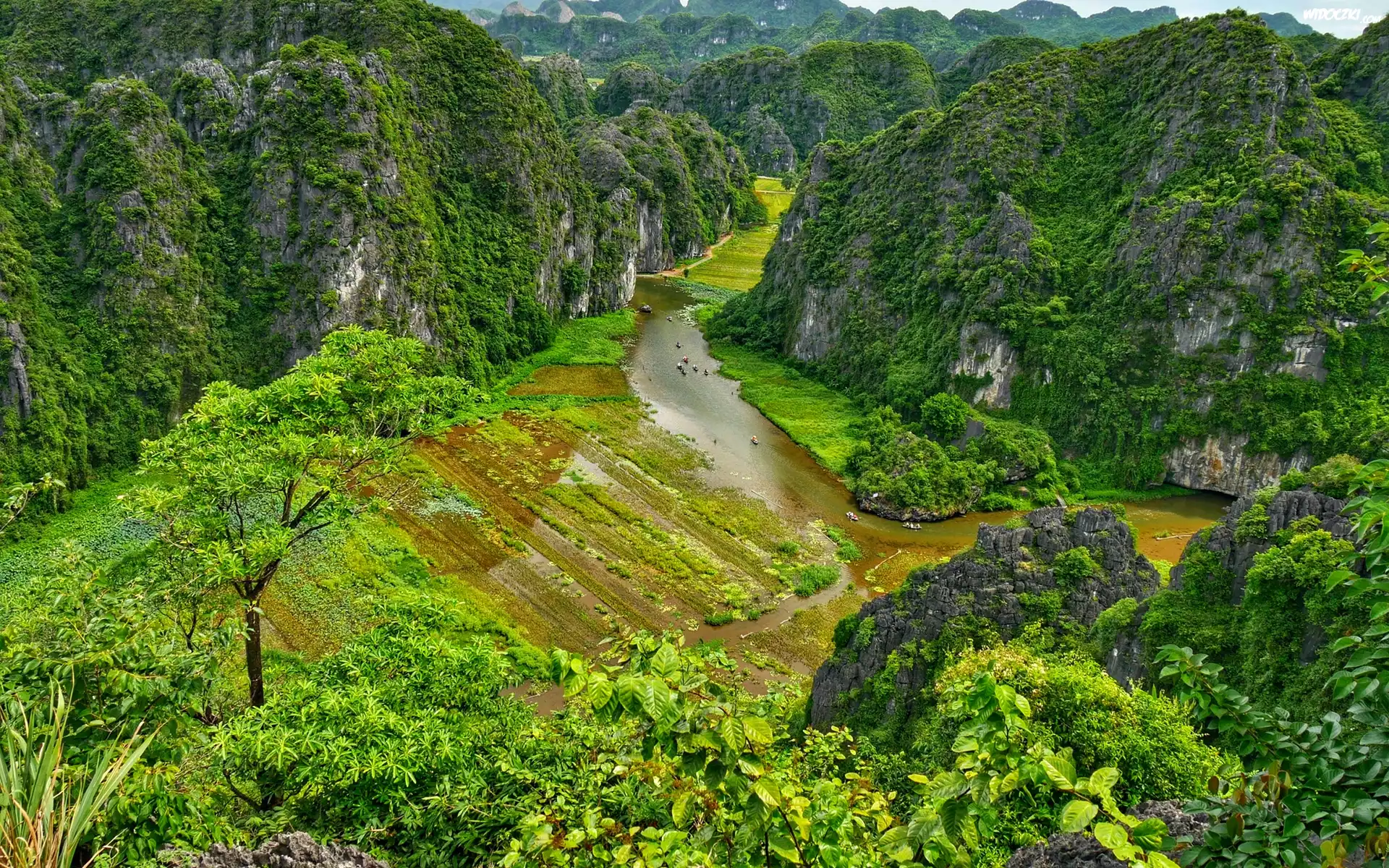 Zdjęcia, Wietnam, Ninh Binh, Dolina Tam Coc, Rzeka Ngo Dong, Góry, Skały