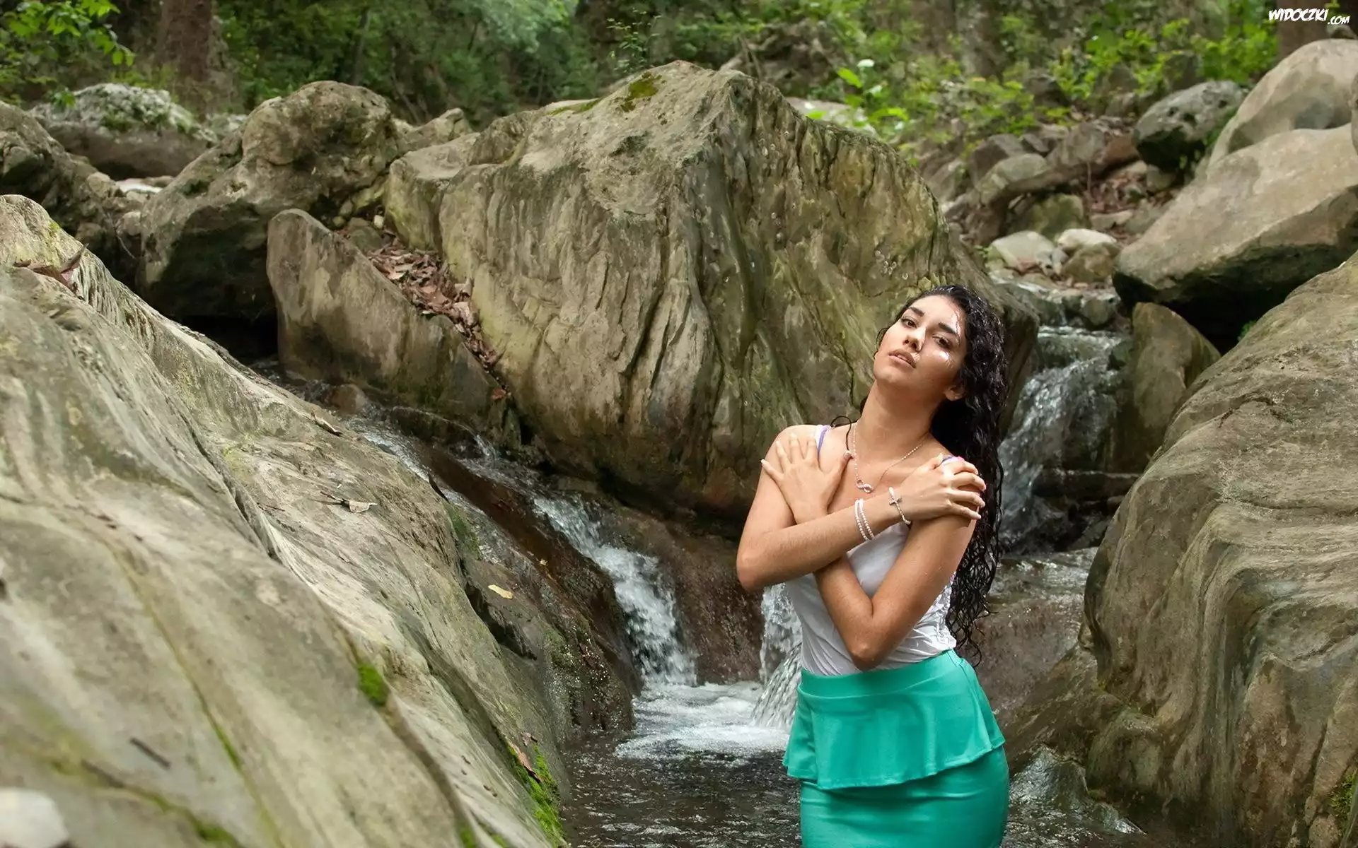 Zdjęcia, Biżuteria, Kobieta, Skały, Wodospad