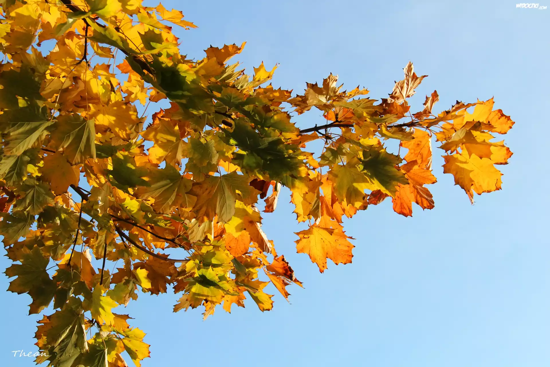 Zdjęcia, Żółte, Jesienne, Liście, Błękitne, Niebo