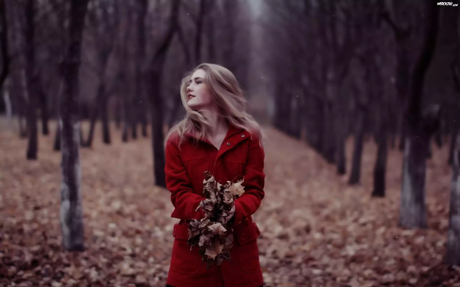 Blondynka, Las, Liście, Zmrok
