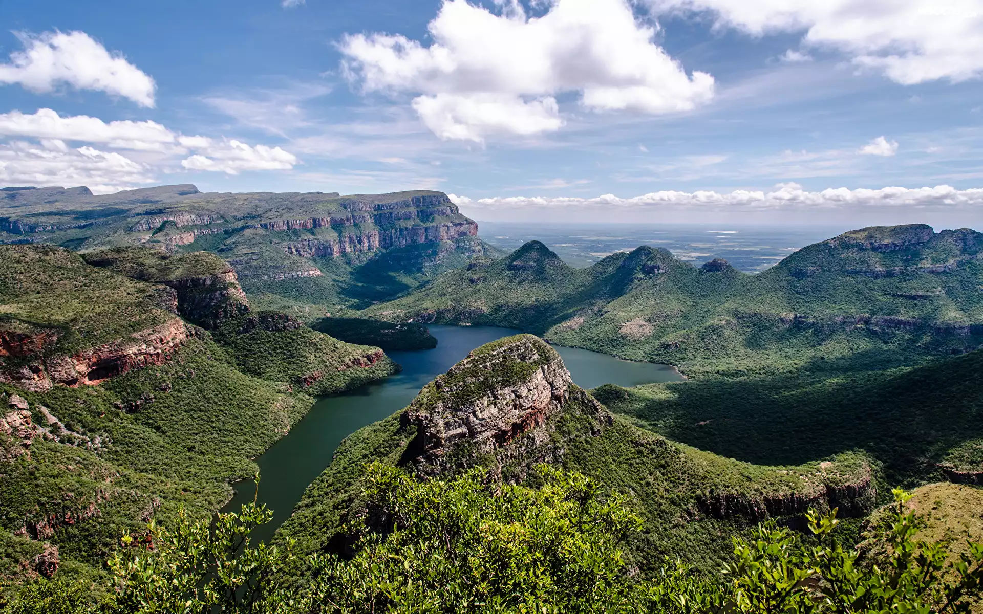 Góry Smocze, Kanion, Rzeka, Blyde River, Lasy, Drzewa, Chmury, Prowincja Mpumalanga, Republika Południowej Afryki |