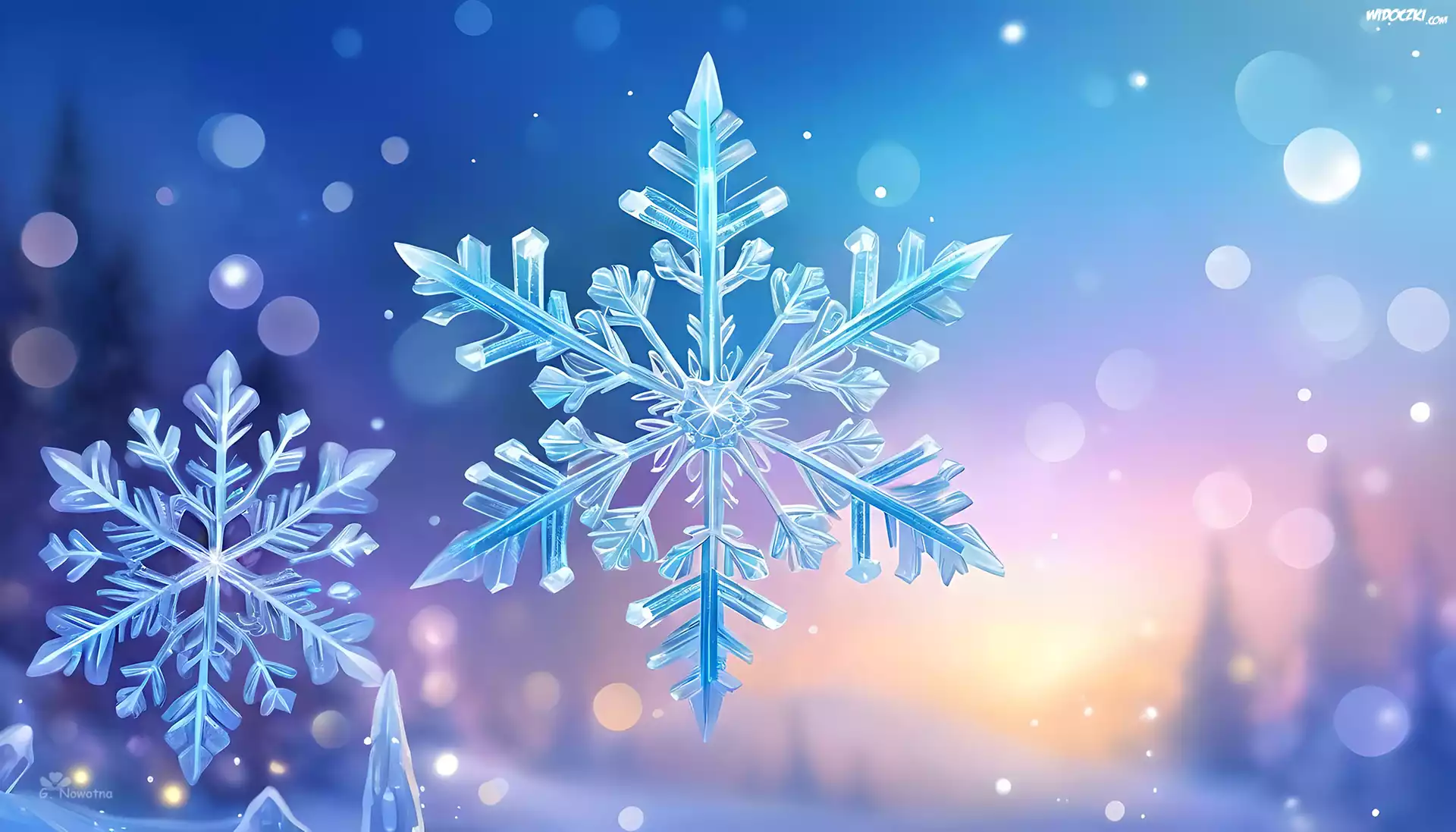 Zdjęcia, Śnieżynka, Płatek śniegu, Bokeh, Zima, Grafika