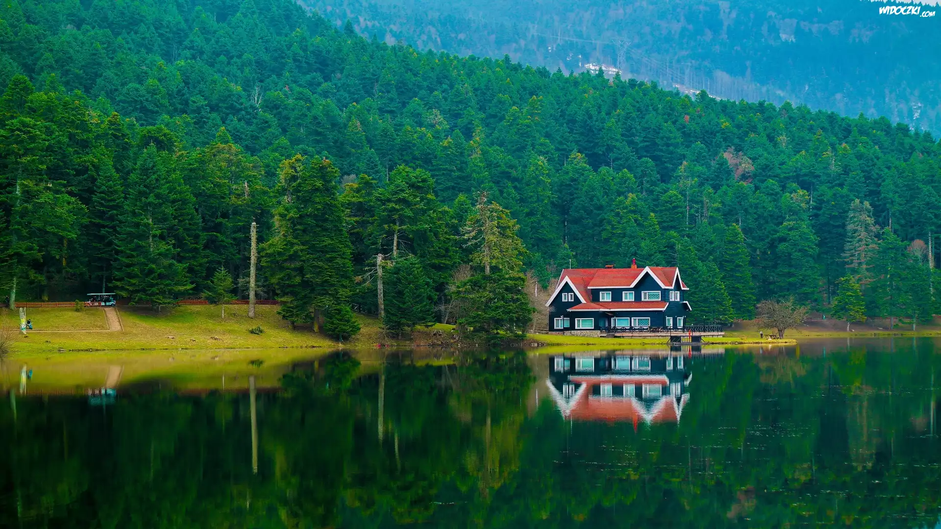 Turcja, Bolu, Jezioro Golcuk, Dom, Lasy, Góry