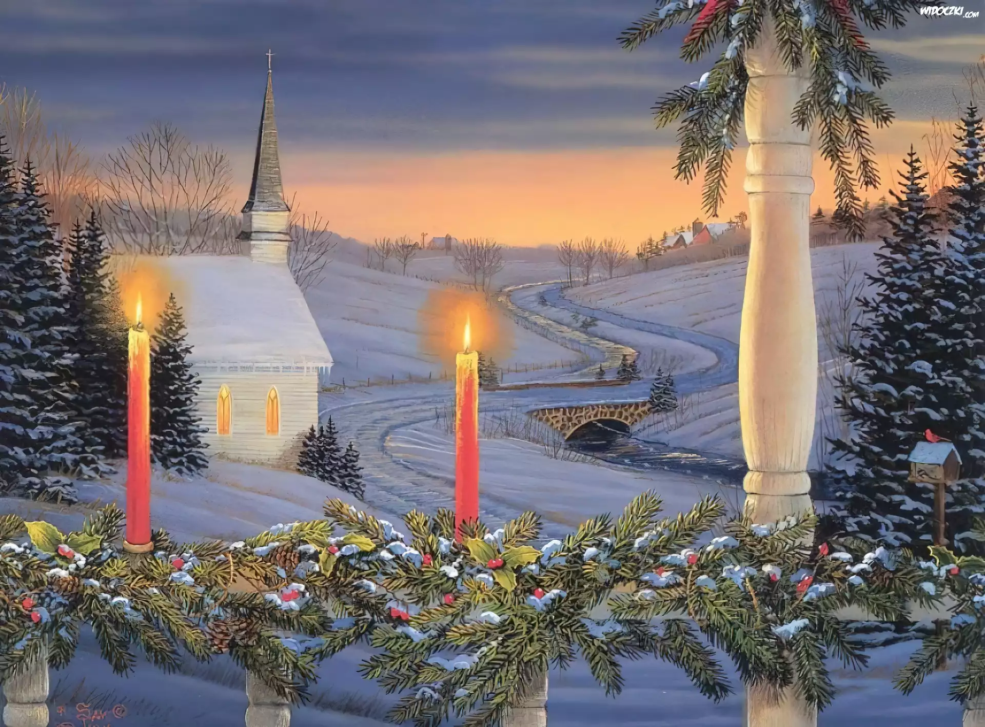 Boże Narodzenie, Kościółek, Udekorowana, Balustrada