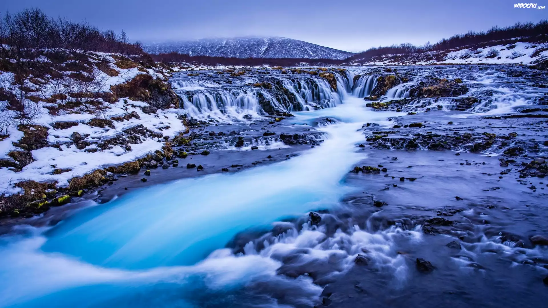 Zdj臋cia, Rzeka Bruara, Wodospad Bruarfoss Waterfall, Islandia, Zima