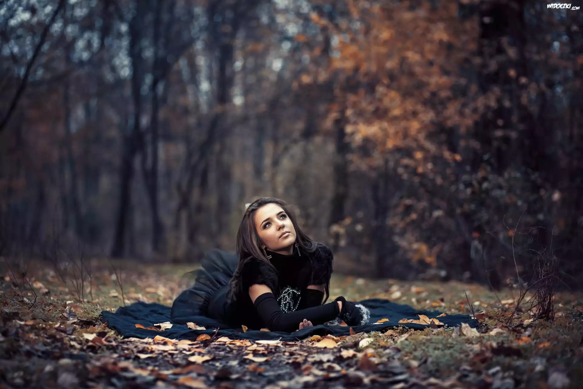 Zdjęcia, Brunetka, Modelka, Park, Liście