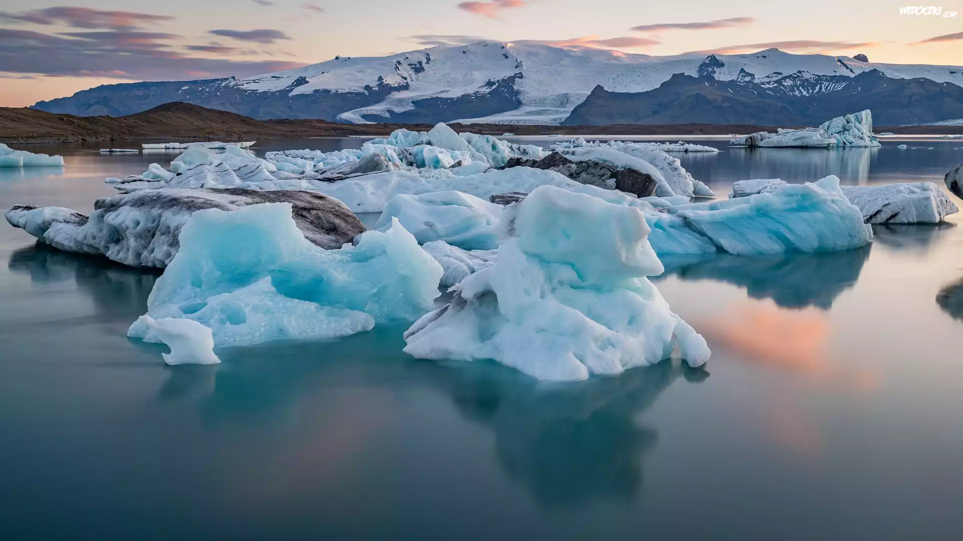 Zdjęcia, Góry, Jezioro, Śnieg, Bryły