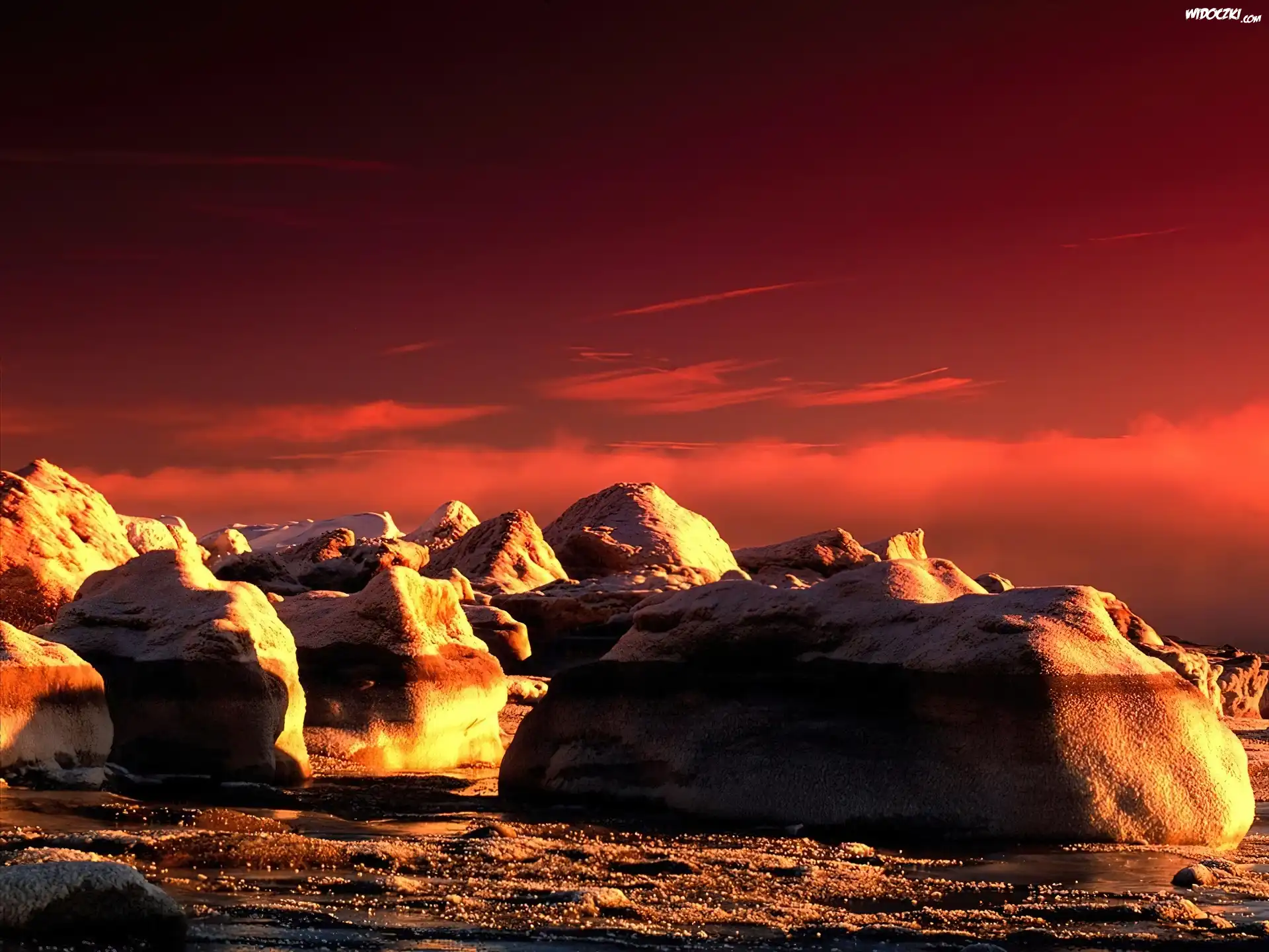 Bryły, Lodowe, Zachód, Słońca, Alaska