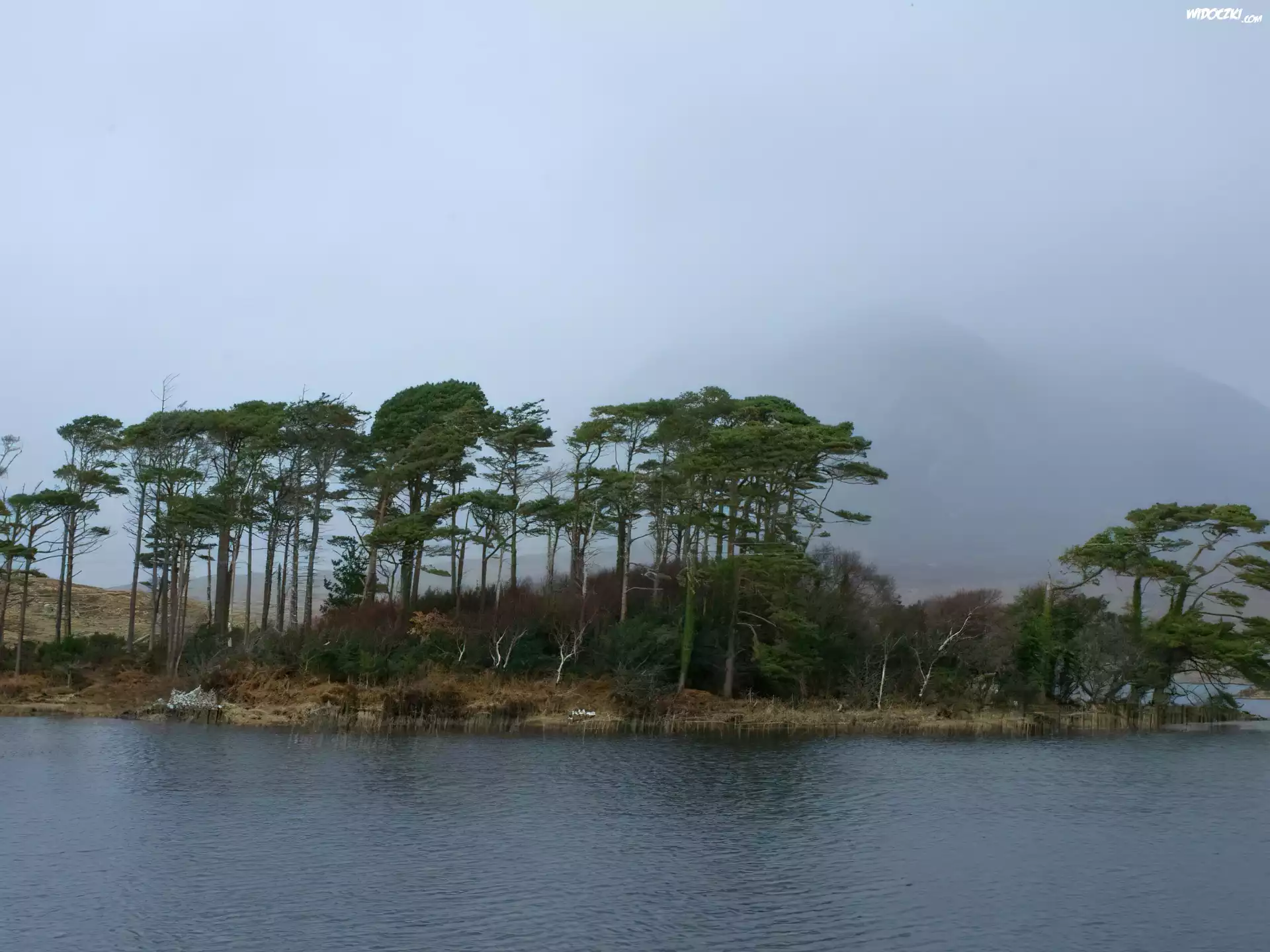 Zdjęcia, Jezioro, Brzeg, Drzewka