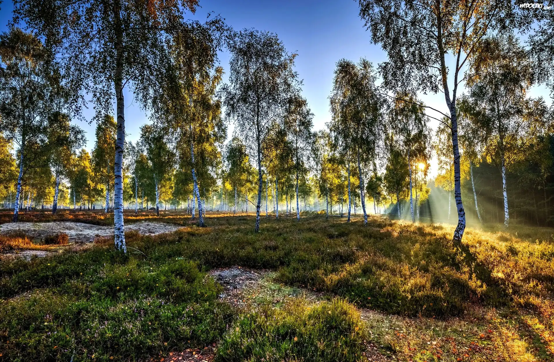 Zdjęcia, Brzozowy Zagajnik, Poranek, Przebijające Światło