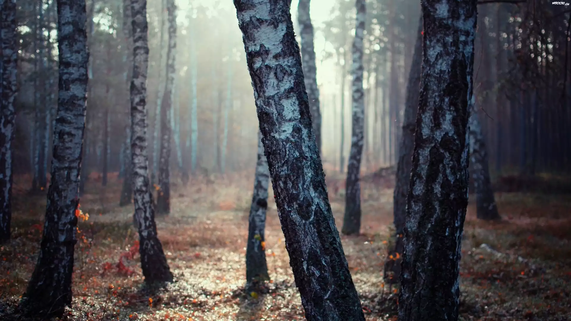 Zdjęcia, Brzozowy, Las, Mgła, Wschód Słońca