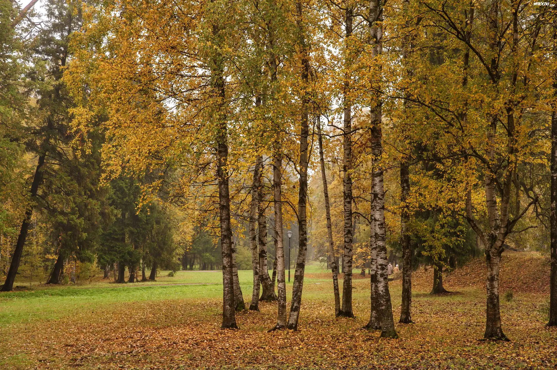 Zdjęcia, Brzozy, Park, Liście, Aleje, Jesień
