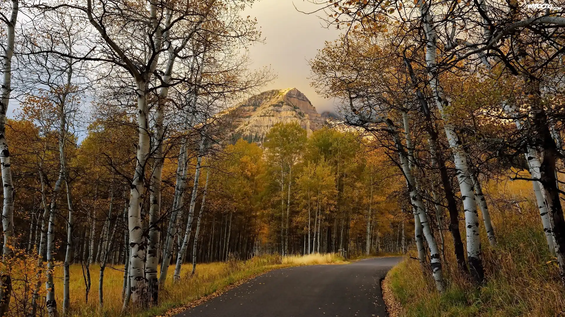Zdjęcia, Brzozy, Las, Droga, Góry