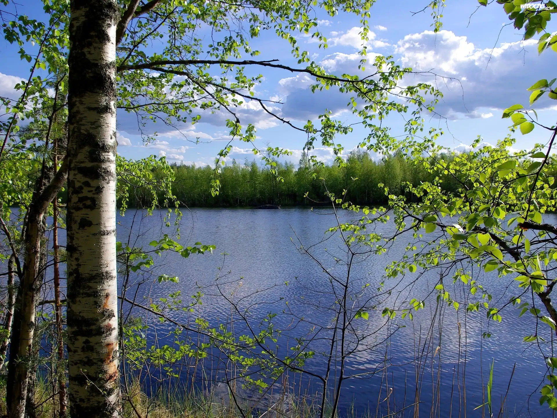 Zdjęcia, Drzewa, Brzozy, Jezioro