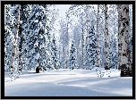 Zdjęcia, Zima, Las, Drzewa, Brzozy, Świerki, Grafika AI