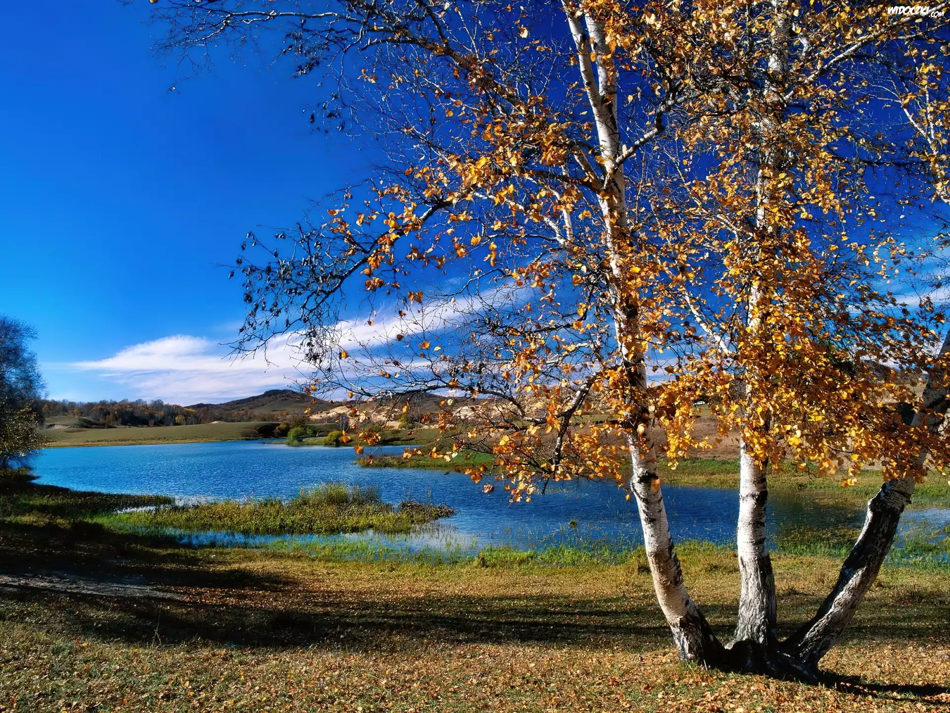 Zdjęcia, Jezioro, Brzozy, Jesień